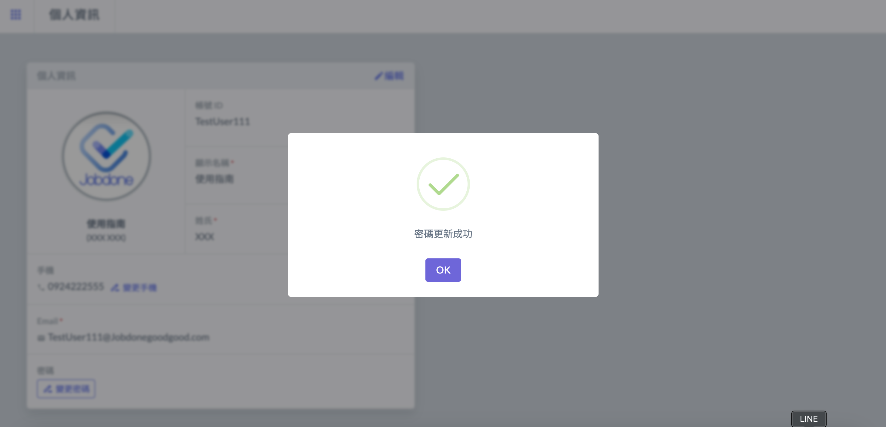 跳出下圖顯示後，即代表密碼已完成更新。