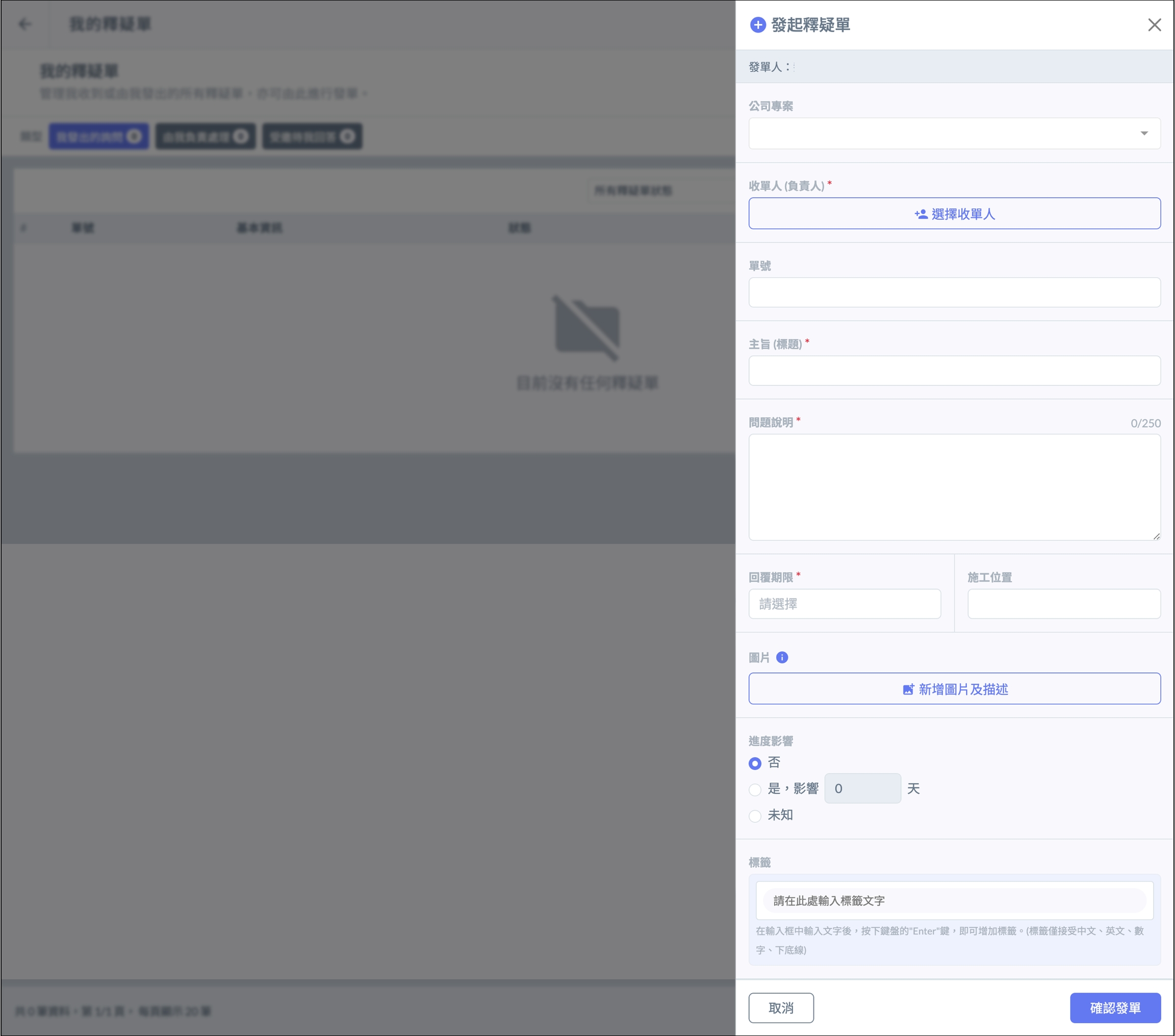 若發起人有選擇專案,則該釋疑單就會顯示在專案紀錄中;若未建立專案,則會顯示在個人紀錄中。
