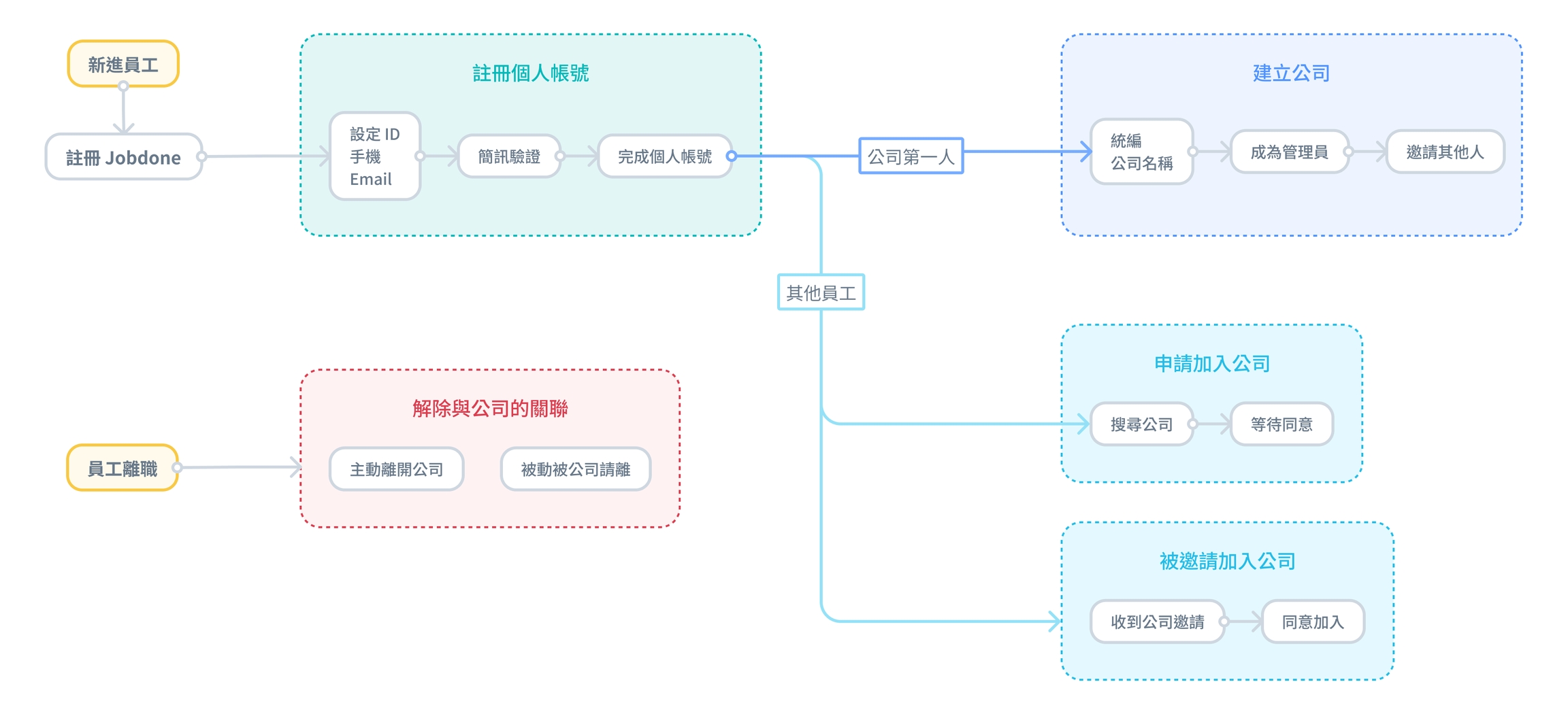 若您是 Jobdone 系統中首位為您所屬公司進行建立的用戶,請點選「建立公司」以完成公司資料的設定。