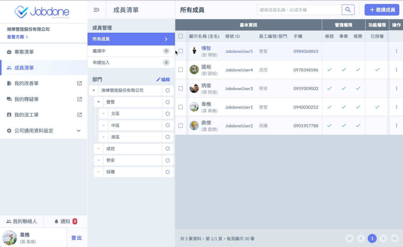 大型的公司客戶可使用部門管理的功能,分類並管理部門成員。