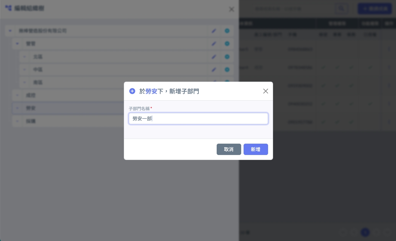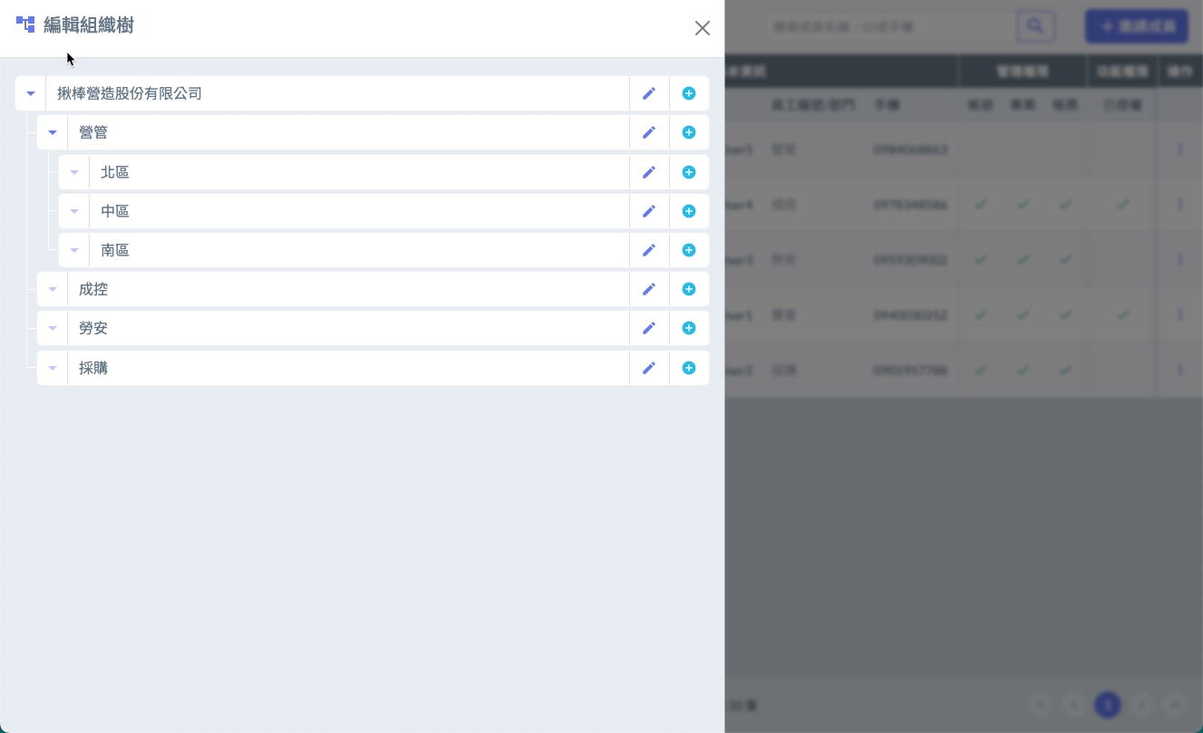 進入成員清單後,點選部門旁的 「 編輯 」 按鈕,在編輯組織樹的頁面開始新增其他部門和子部門。