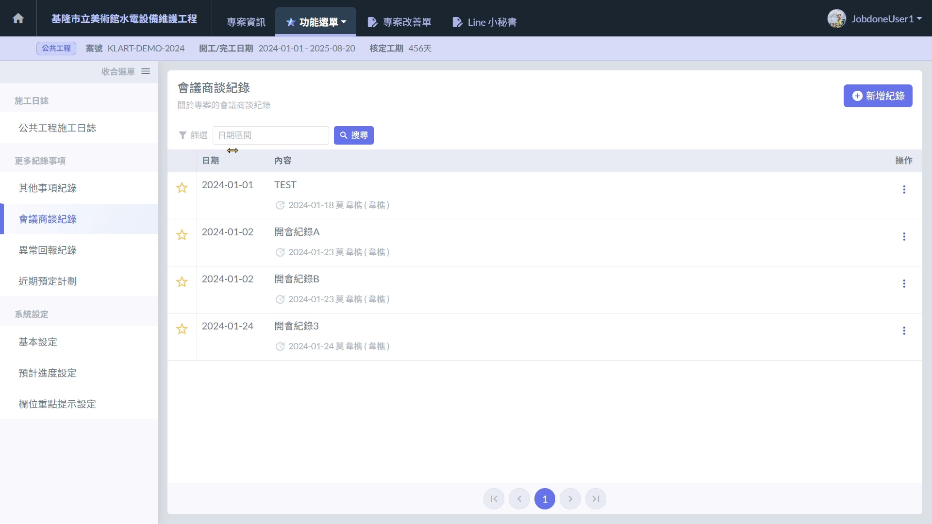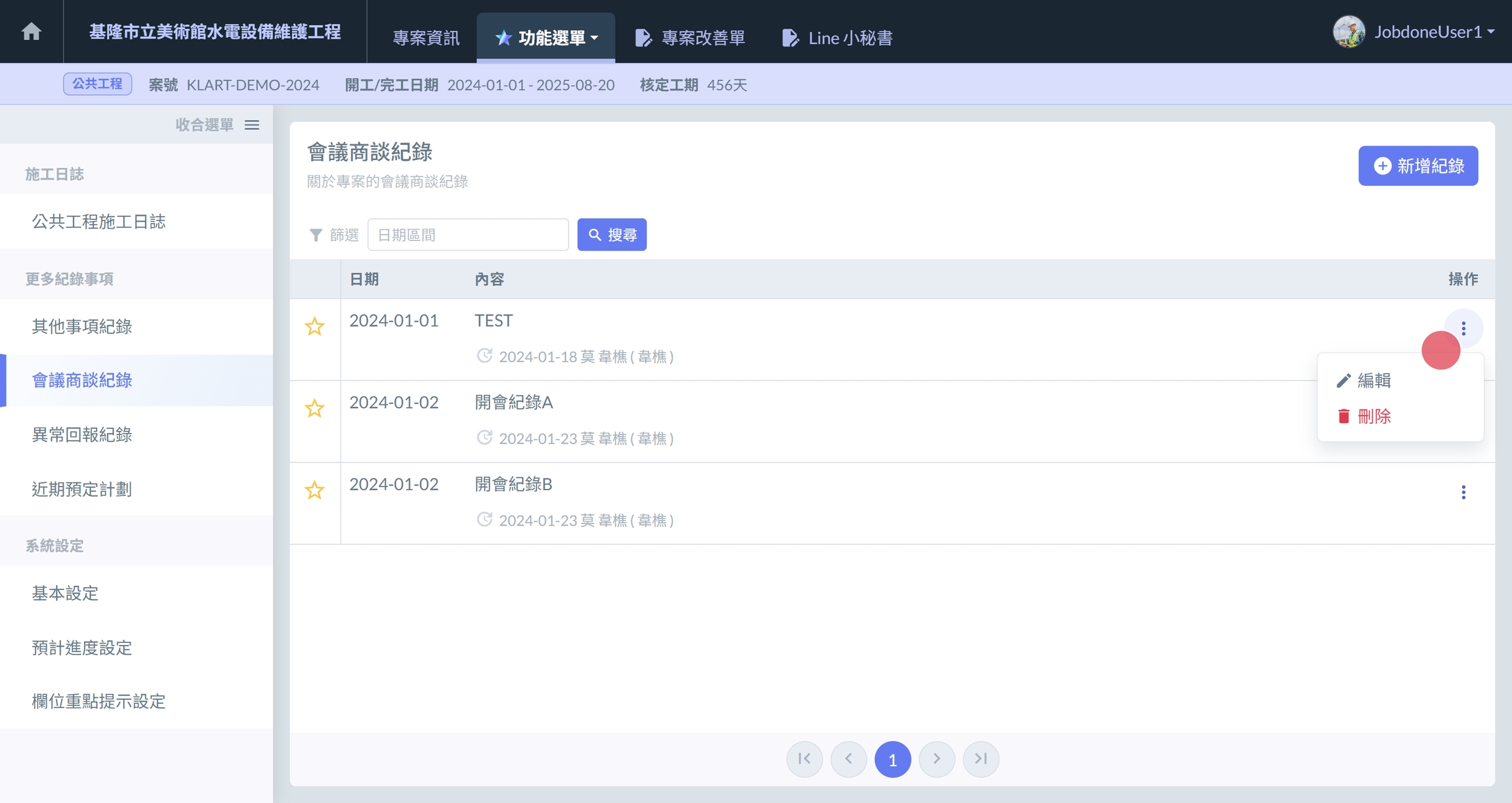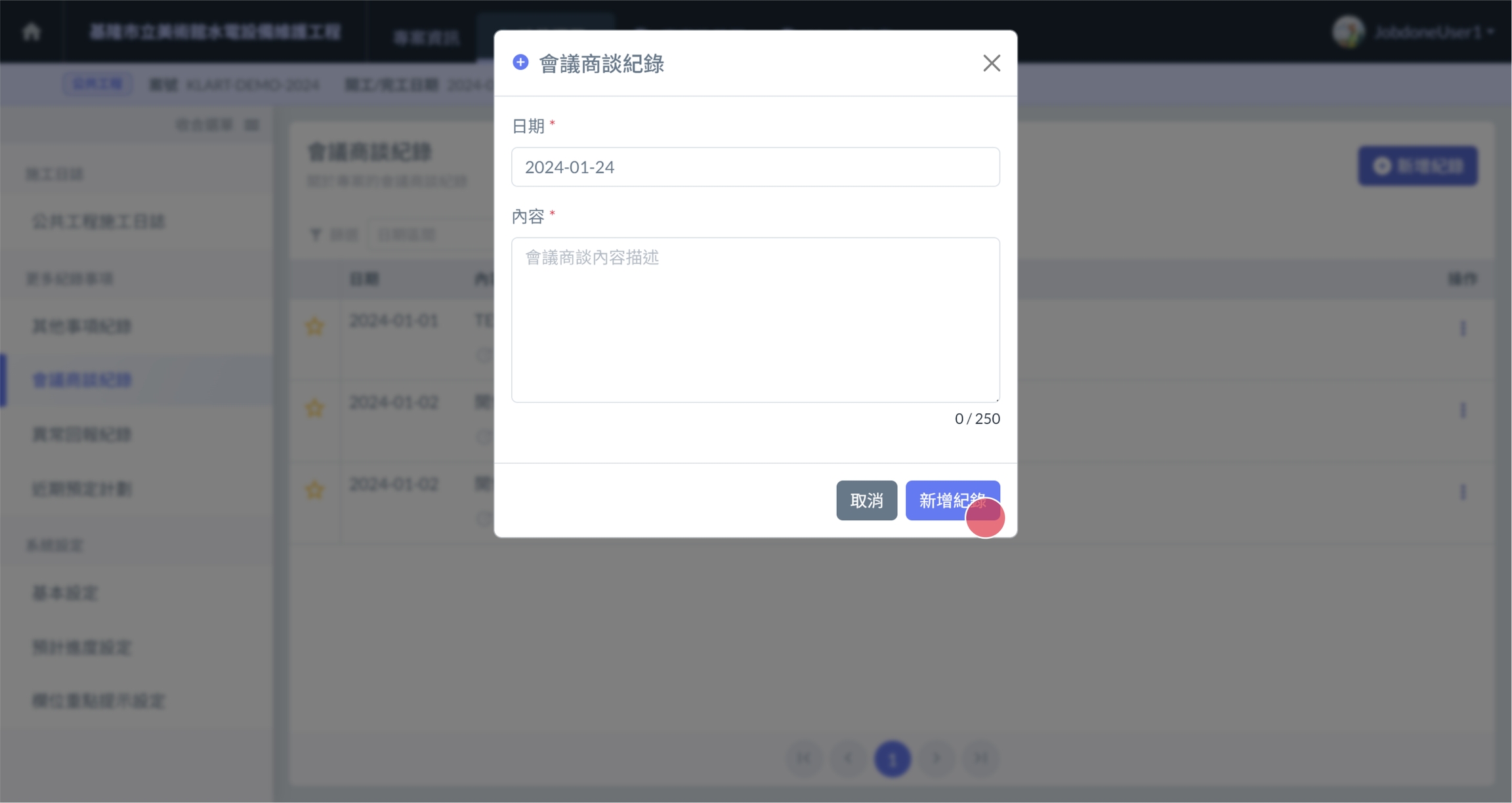 紀錄可於 本頁面進行新增,或從 日誌當中的 → 日誌 / 會議商談紀錄 新增。