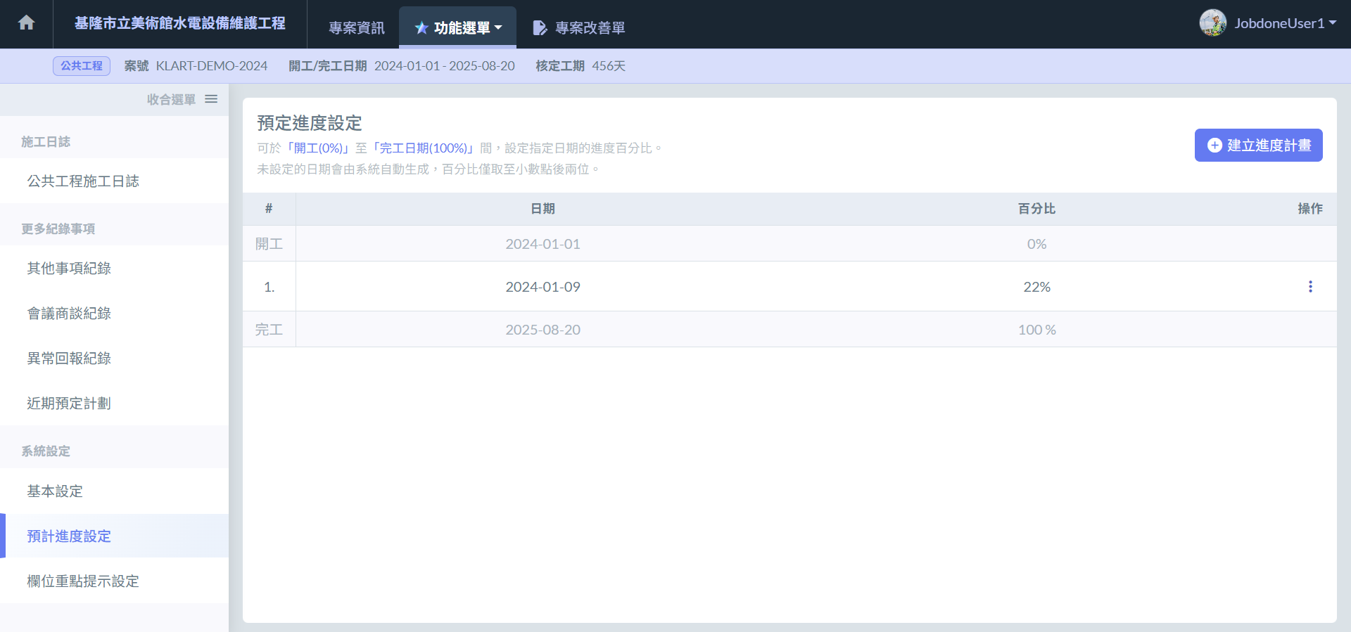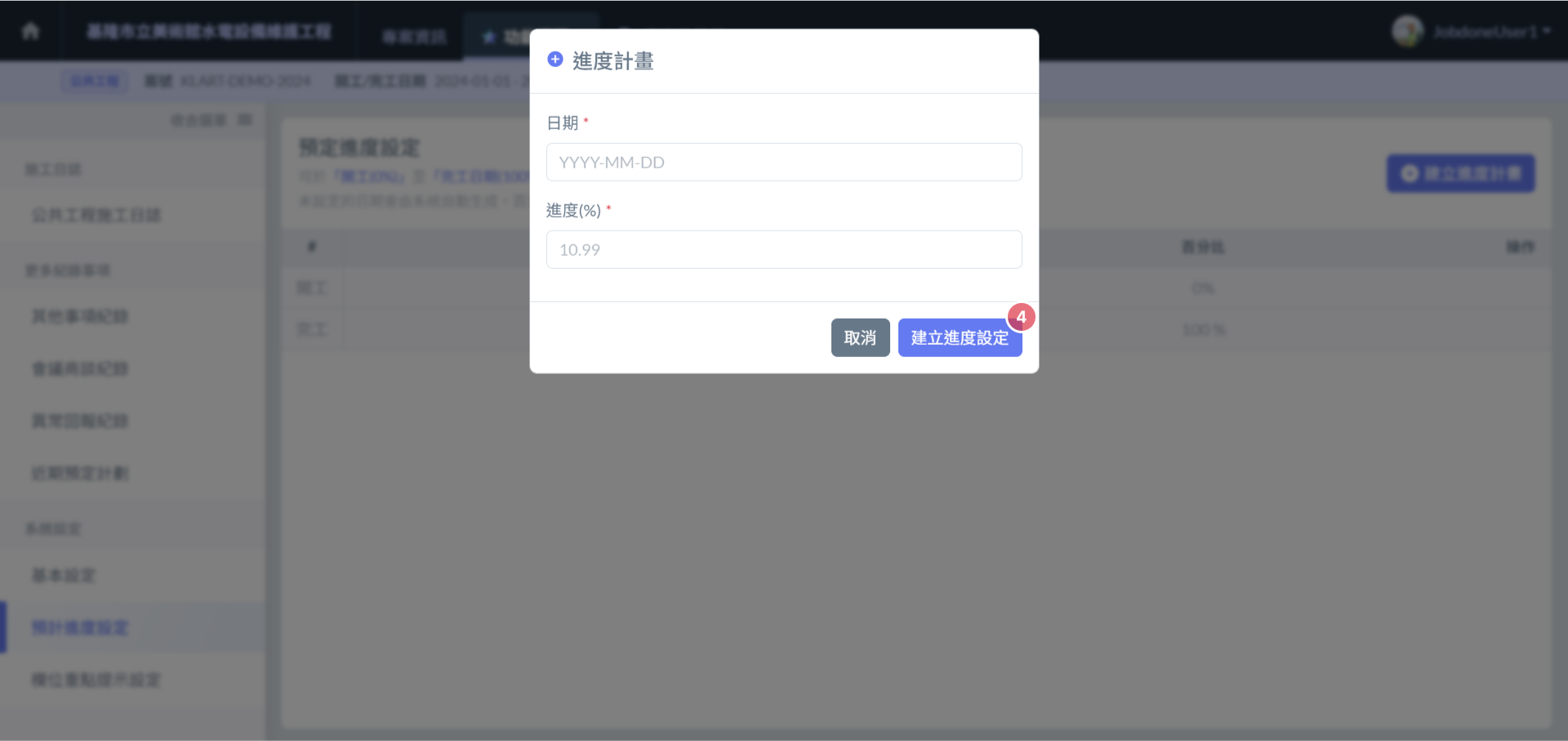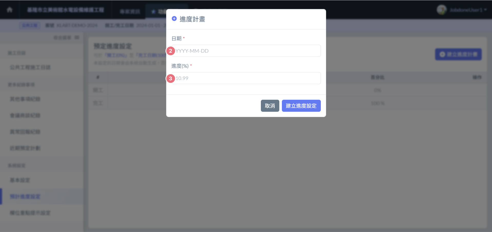 > 2. 輸入 **日期** 與該日期 **進度計畫**。