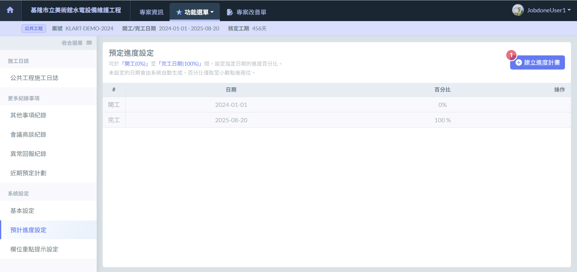 > 3. 按下 **建立進度設定** 按鈕。