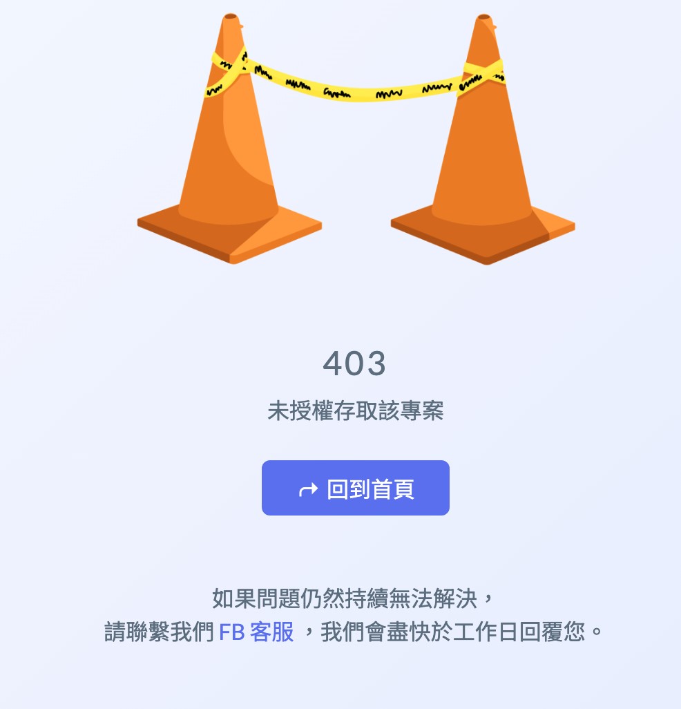 若您在使用部分功能時出現「 403 未授權存取該專案」的錯誤提示，請先確認您是否有該專案的使用權限。