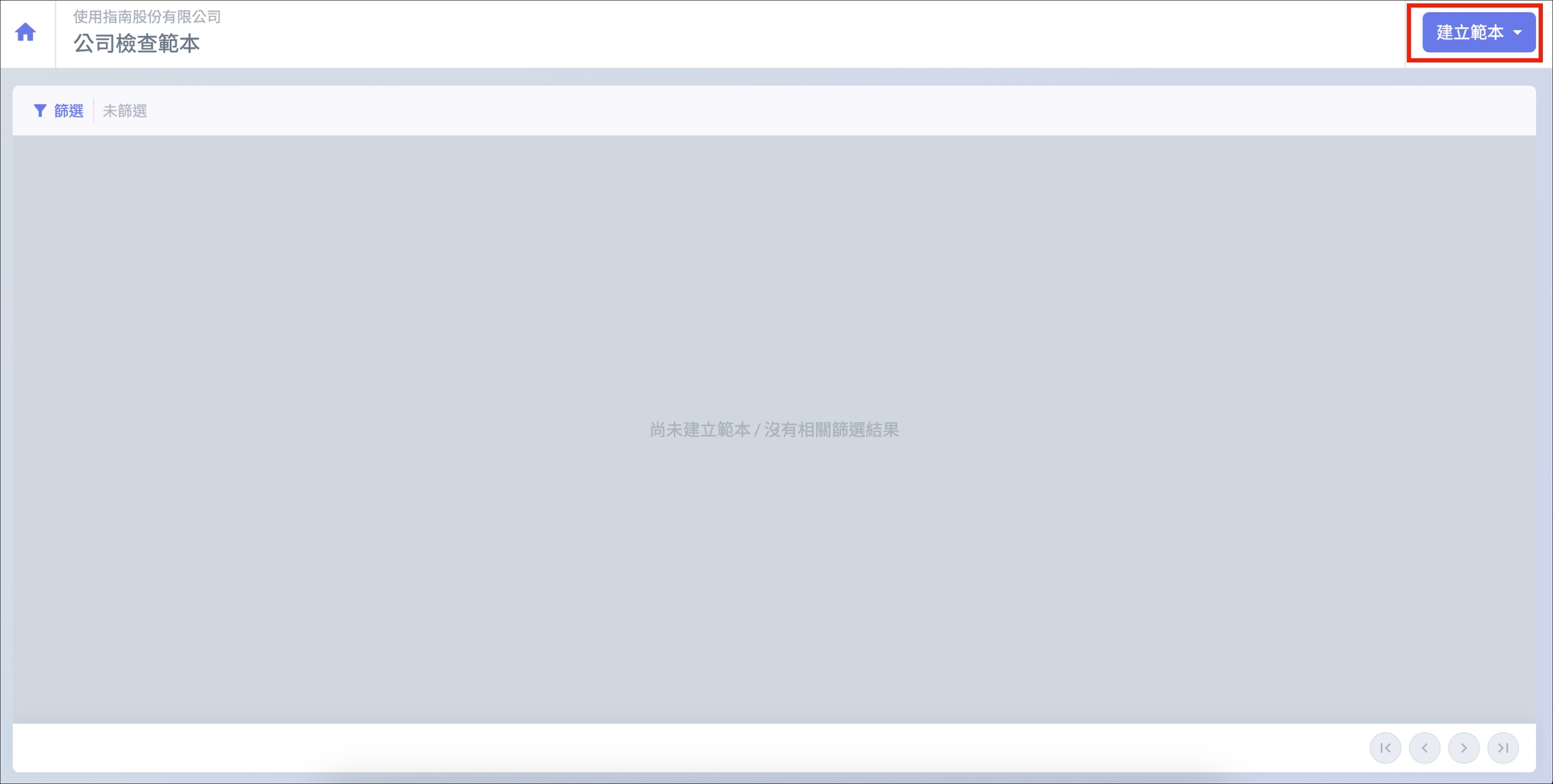 進入公司自主檢查範本介面後,點選右上角 「 建立範本 」