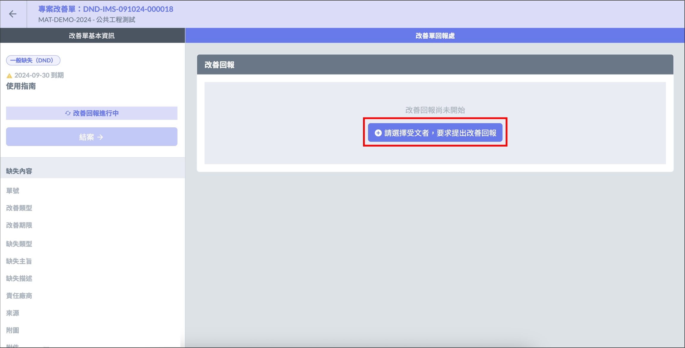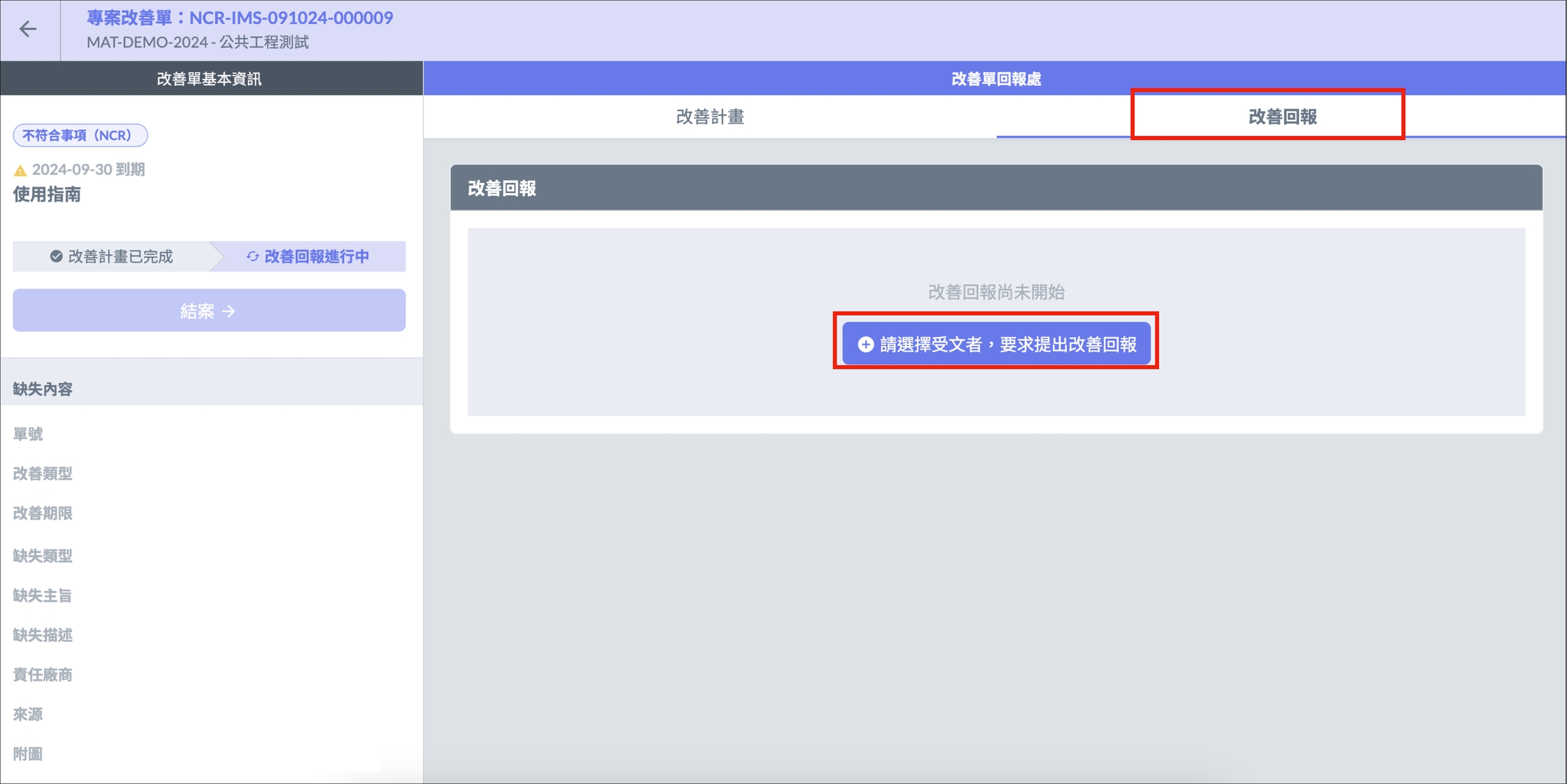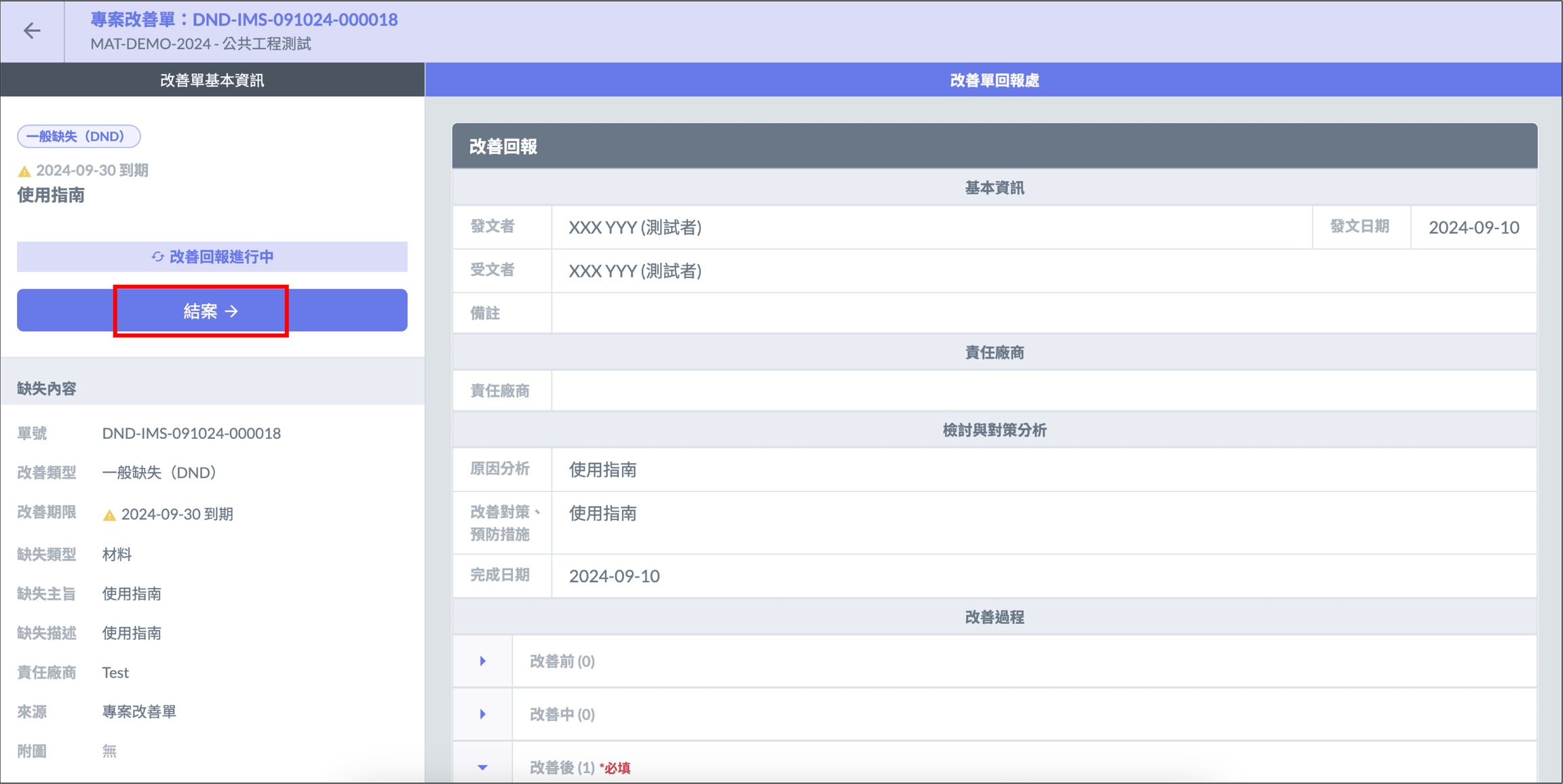 收到回報的改善單後,發文方即可開始進行改善單的審核。